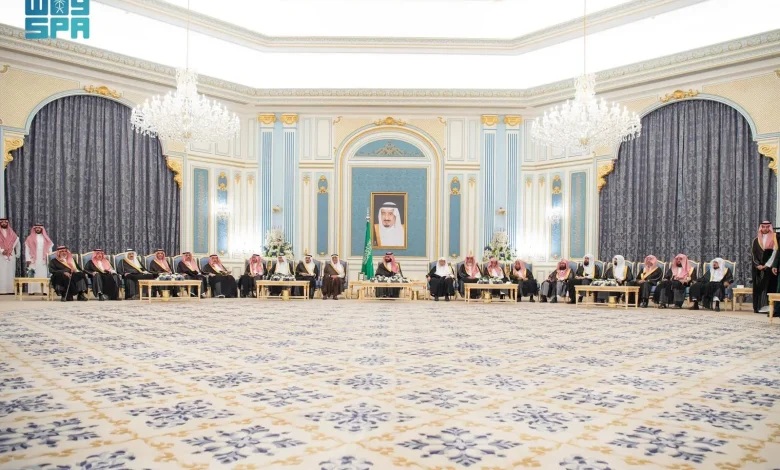 سمو ولي العهد يستقبل أصحاب السمو الأمراء والفضيلة العلماء والمعالي الوزراء وجمعًا من المواطنين الذين قدموا للسلام على سموه