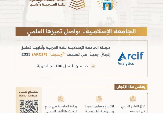 وأكدت الجامعة الإسلامية أن الإنجاز يعكس جودة التميّز في مجال النشر العلمي بالجامعة، والالتزام بمعايير الجودة والنزاهة الأكاديمية، والريادة في دعم البحث والتأليف العلمي، ويجسّد الجهود المتميزة لمركز مصادر المعرفة بالجامعة.
