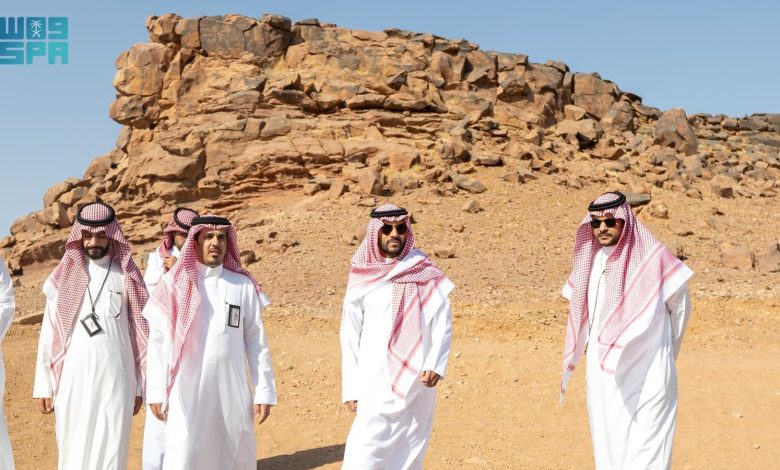 نائب أمير حائل يتفقد الأعمال الإنشائية في مشروع تأهيل موقع جبل ياطب الأثري