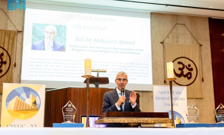 المندوب الدائم للمملكة لدى الأمم المتحدة يتسلّم جائزة “روح الأمم المتحدة 2025” تتويجًا لحضور الدبلوماسية السعودية في مسارات السلام والتنمية