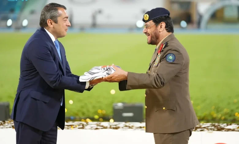 ومن جهة أخرى سلّم اللواء الدكتور حمود بن سليمان الفرج راية البطولة لجمهورية أذربيجان الدولة المستضيفة للنسخة المقبلة من البطولة، تسلمها رئيس الوفد يوسف بينيف.
