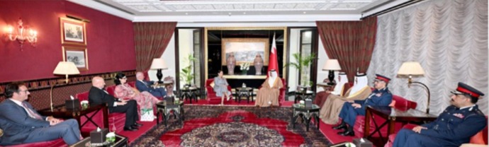 استقبل الفريق أول معالي الشيخ راشد بن عبدالله آل خليفة وزير الداخلية صباح اليوم ، السيدة بريتي باتيل وزيرة الدولة لشؤون الكومنولث والتنمية في حكومة الظل بالمملكة المتحدة والوفد البرلماني البريطاني المشارك في “حوار المنامة” ، بحضور معالي الشيخ فواز بن محمد آل خليفة سفير مملكة البحرين لدى المملكة المتحدة ، وسعادة الفريق عادل بن خليفة الفاضل نائب وزير الداخلية .