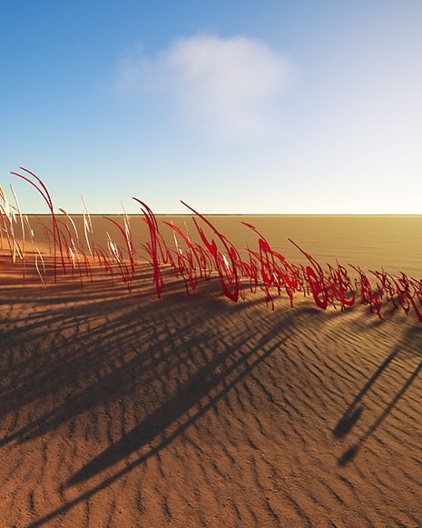 مستلهمةً الخطوط الانسيابية للكثبان الرملية، تقدم المصممة والمعمارية الإيرانية ندى سلمانبور، المقيمة في الإمارات، عملها الفني “نَدّ“، وهو تركيب ضوئي معياريّ يعتمد على منهج بحثي عميق.