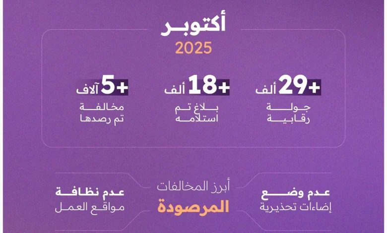 مركز مشاريع البنية التحتية بمنطقة الرياض ينفذ أكثر من 29 ألف جولة رقابية خلال شهر أكتوبر 2025م