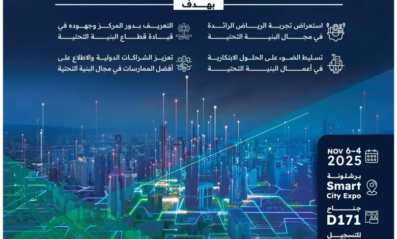 يشارك مركز مشاريع البنية التحتية بمنطقة الرياض في معرض المدن الذكية (Smart City Expo 2025) المقام في مدينة برشلونة الإسبانية، خلال الفترة من 4 إلى 6 نوفمبر، الذي يُعد من أبرز الفعاليات العالمية المتخصصة في استعراض أحدث الابتكارات والتقنيات في مجالات البنية التحتية وتطوير المدن الذكية والتحول الرقمي، بمشاركة عدد من الجهات الوطنية وأكثر من (1150) جهة تمثل (135) دولة و(850) مدينة حول العالم، وبحضور يتوقع أن يتجاوز (25,500) زائر.