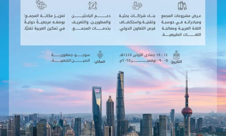 وتأتي هذه المشاركة في إطار سعي المجمع إلى توسيع تأثيره دوليًّا، وتعزيز حضور اللغة العربية في مجالات الابتكار والتقنية والمعرفة الحديثة، على نحو ينسجم مع مستهدفات برنامج تنمية القدرات البشرية، أحد برامج رؤية المملكة 2030.
