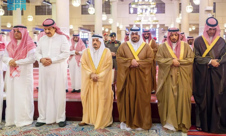 وأدى الصلاة مع سموه عدد من أصحاب السمو الأمراء والمسؤولين، وجمع من المواطنين.
