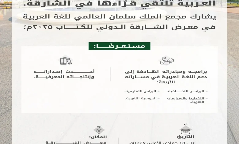 مجمع الملك سلمان العالمي للغة العربية يشارك في معرض الشارقة الدولي للكتاب 2025