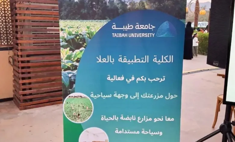 نظّمت جامعة طيبة فعالية توعوية بعنوان “حوِّل مزرعتك إلى وجهة سياحية” في سوق المزارعين بالمنشية، ضمن موسم تمور العُلا، الذي يُقام سنويًا بهدف دعم المزارعين والمهتمين بزراعة النخيل وتطوير الصناعات المرتبطة بالتمور.