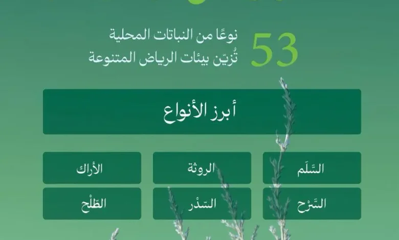 واستعرض البرنامج أبرز فئات النباتات المحلية بالرياض، والبيئات الملائمة لزراعتها، إلى جانب فئاتها، والفصائل التي تنتمي لها، حيث يُعد نبات السَّلَم من الأشجار الصغيرة واسعة الانتشار، ويُزرع في العديد من البيئات المختلفة، مثل الروضات، والكثبان الرملية، والسواحل، وهو ينتمي إلى فصيلة البقولية، كما تضم هذه الفصيلة، نحو إثني عشر نوعًا من النباتات المحلية بالمنطقة، مثل شجرة الطلح النجدي واسع الانتشار في الوديان، والشعاب، والروضات، وشجرة الألال المعمّرة محدودة الانتشار، وشجرة الغاف الأحمر ذات الانتشار المحدود في المنخفضات، وأشجار السِيّال، وأم غَيْلان، والسَّمُر ، واسعة الانتشار، وشُجيرة عشرق المعمّرة، واسعة الانتشار في الجبال، والوديان، والسهول الرملية، وشجيرتي شهباء، ولال -قوص- اشديد، محدودتي الانتشار.