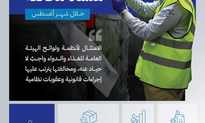 “الغذاء والدواء” تنفذ أكثر من (5,700) جولة تفتيشية في شهر أغسطس