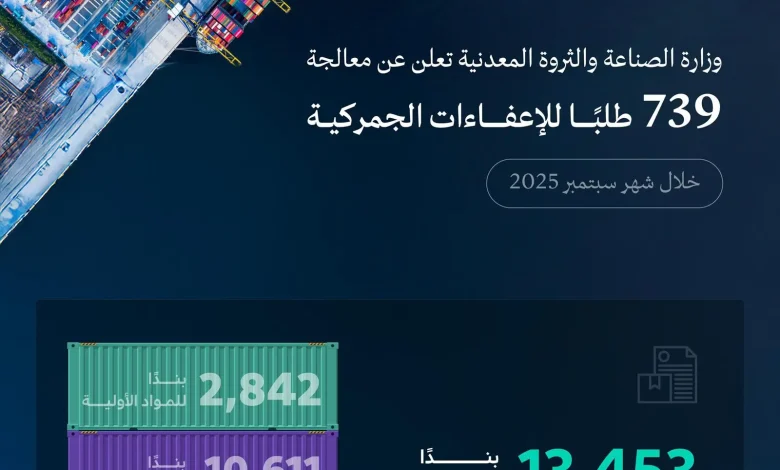 وزارة “الصناعة” تعالج 739 طلبًا للإعفاء الجمركي خلال شهر سبتمبر 2025