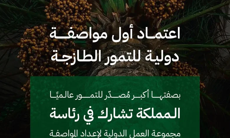 وأكدت “الغذاء والدواء” أن هذا الإنجاز يُجسد ما تمتلكه المملكة من خبرات فنية وتنظيمية رائدة في تطوير المعايير والمواصفات الدولية، مشيرةً إلى أن اعتماد هذه المواصفة يُسهم في دعم تنافسية التمور السعودية وتوسيع انتشارها عالميًا، بما ينعكس إيجابًا على نمو الاقتصاد الوطني وتنمية الصادرات غير النفطية، في إطار مستهدفات رؤية المملكة 2030 الرامية إلى ترسيخ مكانة المملكة كمركز عالمي لإنتاج وتجارة التمور.