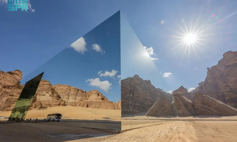 وتتميّز القاعة بتصميمها المكعّب الذي تعكس جدرانه الخارجية المرايا جمال البيئة الطبيعية للعُلا وثراءها الثقافي، لتكون أيقونة معمارية عالمية وأحد المراكز الرئيسة ضمن مشروع “رحلة عبر الزمن”.