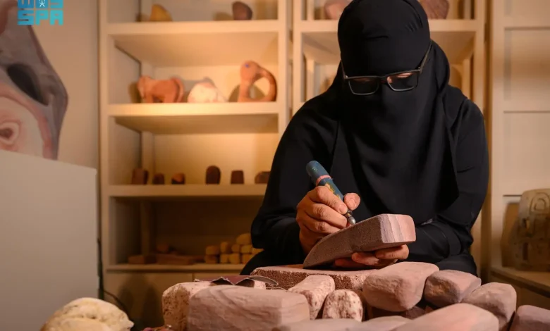 في أحد أركان فعاليات الأسبوع السعودي الدولي للحرف اليدوية “بنان”، وقفت النحاتة القادمة من منطقة تبوك هادئة، كأنها تعرف تمامًا ما تفعله منذ أربعين سنة، وكأن كل قطعة نحتتها كانت خطوة أخرى في طريق طويل بدأته يوم اكتشفت أن الحجر ليس صامتًا كما يظن الجميع.