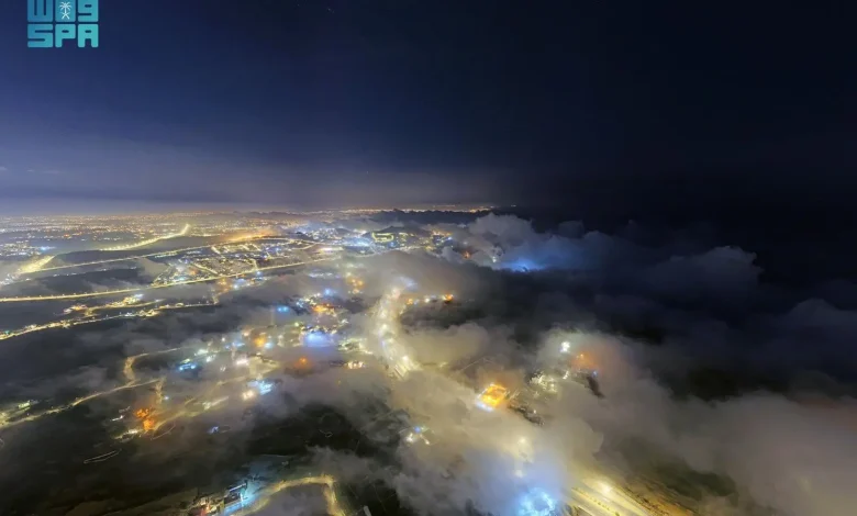 السحب والضباب ينسجان جمال أبها وروعة مرتفعات عسير