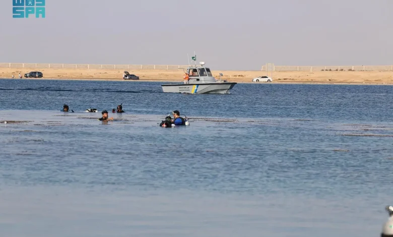 حرس الحدود ينفذ حملة تطوعية لتنظيف شاطئ الشرم وقاع البحر في منطقة المدينة المنورة