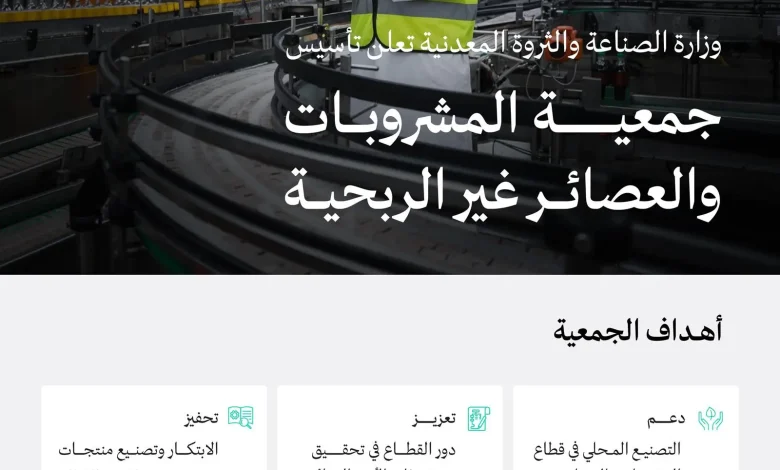 أعلنت وزارة الصناعة والثروة المعدنية عن تأسيس جمعية المشروبات والعصائر غير الربحية، التي تستهدف دعم التصنيع المحلي، وتحفيز الابتكار، بما يُسهم في نمو القطاع وتعزيز تنافسيته، وذلك في إطار جهود الوزارة لتَمكين المنظمات غير الربحية في قطاعي الصناعة والتعدين، إيمانًا بدورها في دعم التنمية الاقتصادية والاجتماعية بالمملكة.