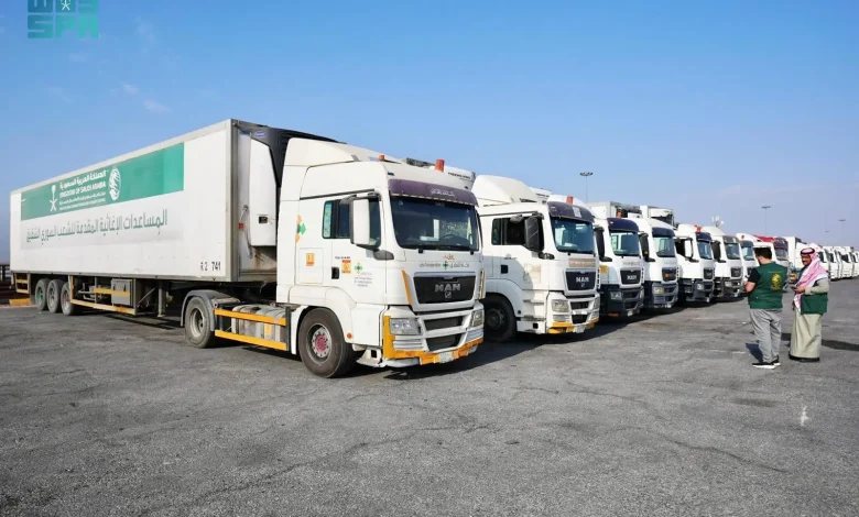 قافلة إغاثية سعودية تعبر منفذ جابر الحدودي متجهة إلى سوريا مقدمة من مركز الملك سلمان للإغاثة