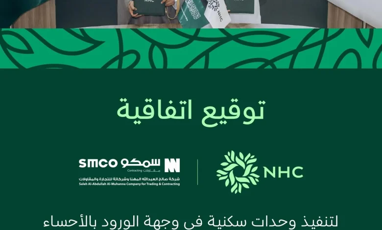 NHC توقّع اتفاقية لبناء 1,290 وحدة في وجهة الورود بالأحساء بقيمة تتجاوز 651 مليون ريال