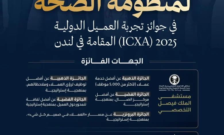 المملكة تحصد 9 جوائز عالمية لمنشآت المنظومة الصحية ضمن جوائز تجربة العميل الدولية لعام 2025