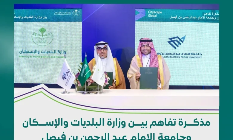 “البلديات والإسكان” و”جامعة الإمام عبدالرحمن بن فيصل” توقّعان مذكرة تفاهم لتعزيز التعاون في مجالات التطوير العقاري والبحث العلمي والتأهيل الأكاديمي
