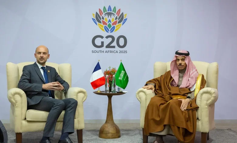 التقى صاحب السمو الأمير فيصل بن فرحان بن عبدالله، وزير الخارجية، اليوم، معالي وزير أوروبا والشؤون الخارجية في الجمهورية الفرنسية جان نويل بارو، وذلك على هامش قمة قادة دول مجموعة العشرين (G20) بمدينة جوهانسبرغ في جمهورية جنوب أفريقيا.