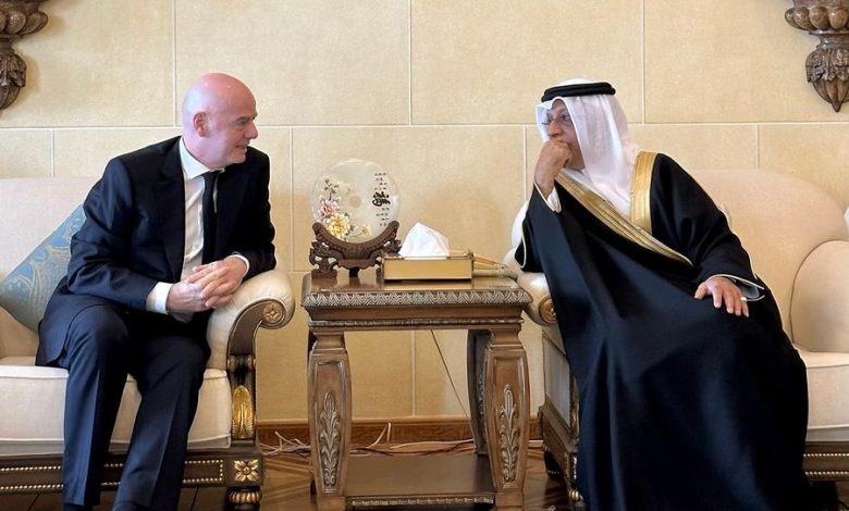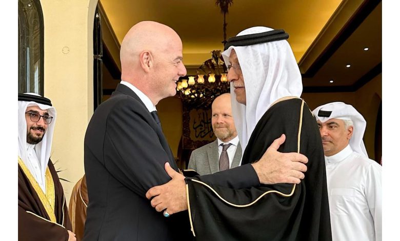 رئيس الفيفا إنفانتينو يقدّم واجب العزاء للشيخ سلمان بن إبراهيم رئيس الإتحاد الآسيوي بوفاة والده