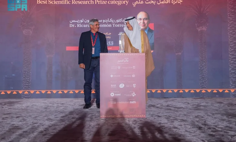 إلى ذلك، كرّم معاليه 13 باحثًا من الفائزين بجائزة المركز الوطني للنخيل والتمور الدولية، التي حُظيت بمشاركة 205 متنافسين من 35 دولة، فاز منهم 13 بالجائزة، ممثلين لدول: السعودية، وأمريكا، والمملكة المتحدة، والمكسيك، وكندا، وماليزيا، وأستراليا، وتونس، والعراق، والأردن، والمغرب، ومصر.