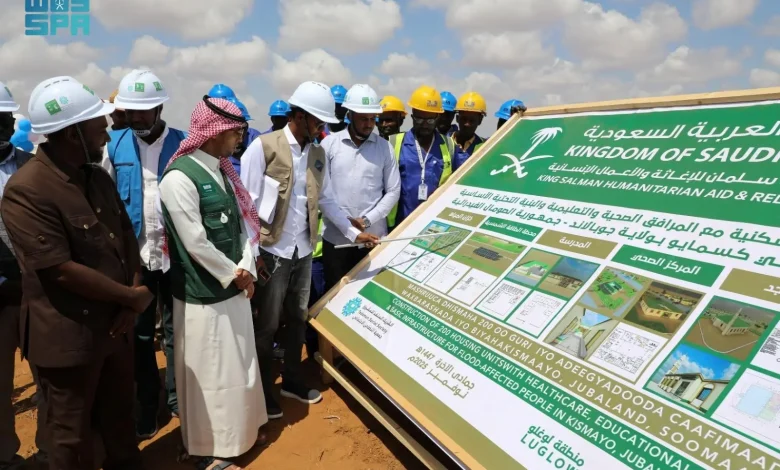 مركز الملك سلمان للإغاثة يضع حجر الأساس لمشروع إنشاء (200) وحدة سكنية للمتضررين من الفيضانات في مدينة كسمايو بالصومال