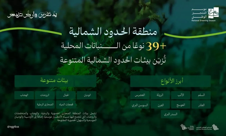 البرنامج الوطني للتشجير: بيئات الحدود الشمالية تزدهر بانتشار39 نوعًا من النباتات المحلية الملائمة للتشجير