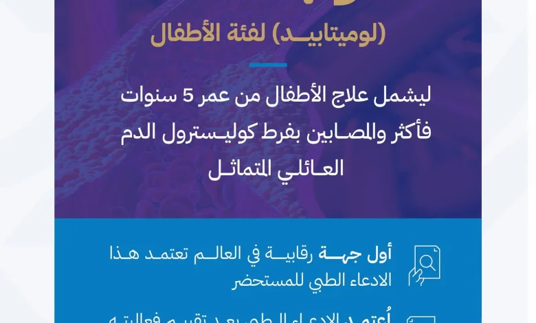 ريادة عالمية لتوفير خيارات علاجية.. “الغذاء والدواء” تعتمد استخدام مستحضر “لوجكستا” لعلاج الأطفال المصابين بفرط كوليسترول الدم العائلي المتماثل