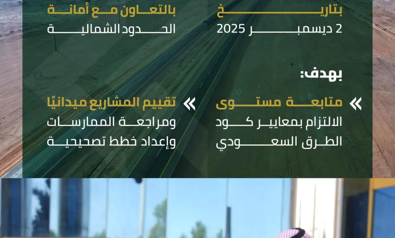 “هيئة الطرق” تعلن بدء المرحلة الأولى لقياس الامتثال لكود الطرق السعودي واختيار أمانة الحدود الشمالية جهةً أولى للتقييم