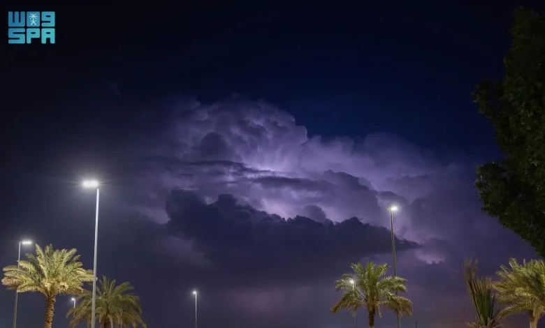 صواعق رعدية مصحوبة بأمطار على مدينة عرعر