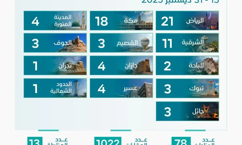 أشرف مركز الإسناد والتصفية (إنفاذ) على (78) مزادًا عقاريًا خلال الفترة من 15 إلى 31 ديسمبر 2025م، لبيع (1022) أصلًا عقاريًا متنوعًا تشمل العقارات السكنية والتجارية والزراعية، موزّعة على مختلف مناطق المملكة.