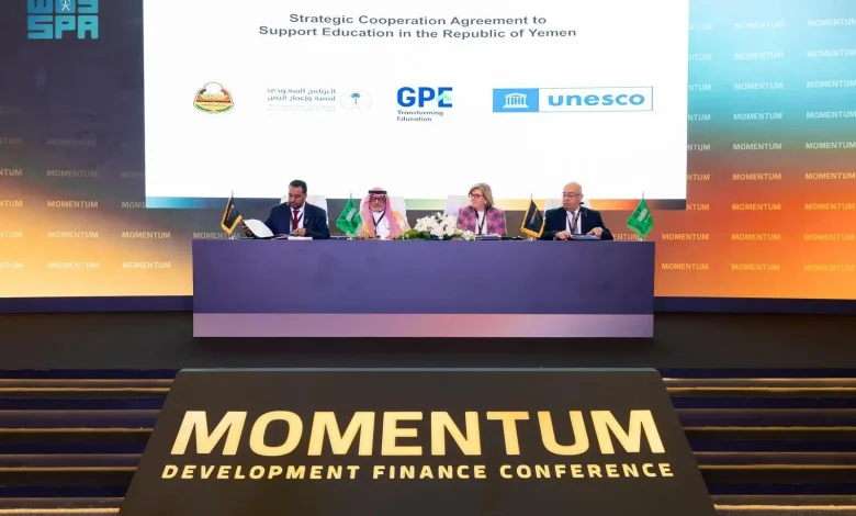 وقع البرنامج السعودي لتنمية وإعمار اليمن، ووزارة التربية والتعليم في اليمن، ومنظمة الأمم المتحدة للتربية والعلم والثقافة (اليونيسكو)، ومنظمة الشراكة العالمية من أجل التعليم (GPE) اتفاقية التعاون الإستراتيجي لدعم التعليم في اليمن وتطوير البنية التحتية التعليمية، وذلك خلال مؤتمر التمويل التنموي (MOMENTUM)، المنعقد في مركز الملك عبدالعزيز الدولي للمؤتمرات بمدينة الرياض.