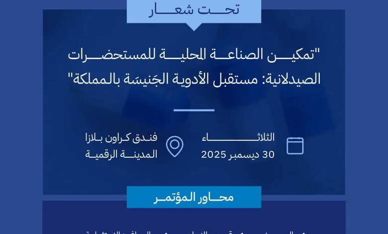 تنظّم الهيئة العامة للغذاء والدواء مؤتمر الأدوية الجَنيسَة تحت عنوان “تمكين الصناعة المحلية للمستحضرات الصيدلانية: مستقبل الأدوية الجَنيسَة بالمملكة العربية السعودية”، وذلك يوم الثلاثاء 30 ديسمبر 2025م بمدينة الرياض، سعيًا لتعزيز الصحة العامة.