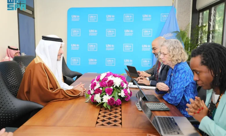 جاء ذلك على هامش أعمال الدورة السابعة لجمعية الأمم المتحدة للبيئة في نيروبي خلال الفترة من 8 إلى 12 ديسمبر 2025م، حيث عقد معاليه سلسلة من اللقاءات الثنائية، تناولت توسيع التعاون الدولي ودعم الجهود العالمية لحماية البيئة؛ وفي هذا الإطار ناقش معاليه مع المديرة التنفيذية لبرنامج الأمم المتحدة للبيئة إنغر أندرسن، سبل تعزيز التعاون المشترك بين الوزارة والبرنامج، خاصة في يتعلق بمبادرات الاستدامة والتكيف مع التغير المناخي، ودعم البرامج الأممية بجهود وطنية فعالة.