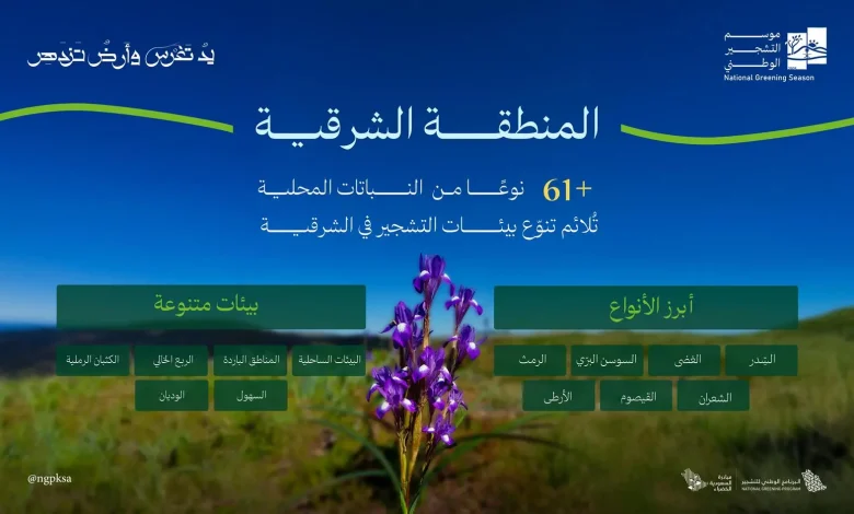 البرنامج الوطني للتشجير: انتشار واسع لأكثر من (61) نوعًا من النباتات المحلية في بيئات الشرقية
