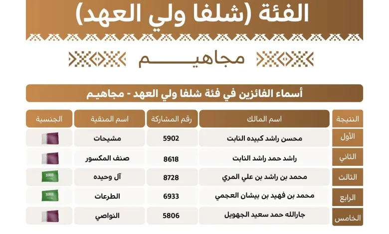 إعلان نتائج الفائزين في فئة “شلفا ولي العهد” لون المجاهيم