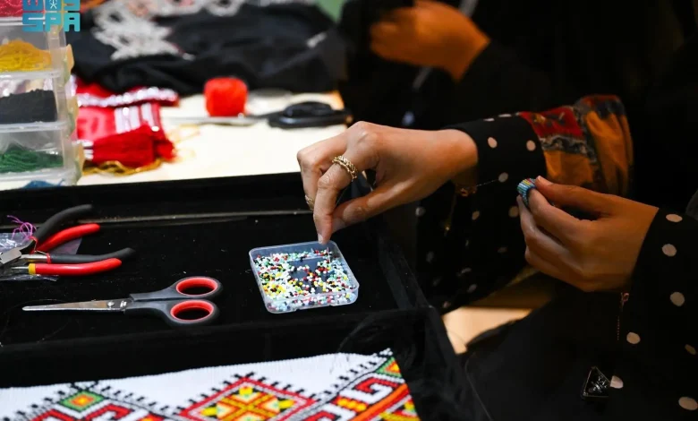 واستعرض الجناح عددًا من الحرف التقليدية التي شكّلت جزءًا أصيلًا من الهوية الثقافية للمجتمع السعودي، من بينها الخرز التراثي المستخدم في الزينة التقليدية بما يحمله من دلالات جمالية واجتماعية متوارثة، والتطريز التراثي الذي يحفظ الرموز المحلية في أنماطه وألوانه، باعتباره لغة صامتة تحكي تاريخ المناطق وتفاصيلها، إلى جانب صناعة السبح بوصفها حرفة دقيقة تجمع بين البعد الروحي والمهارة اليدوية، إضافةً إلى فن الخزف الذي يحوّل الطين إلى أوانٍ تحمل روح المكان وذاكرة الاستخدام اليومي عبر الزمن.