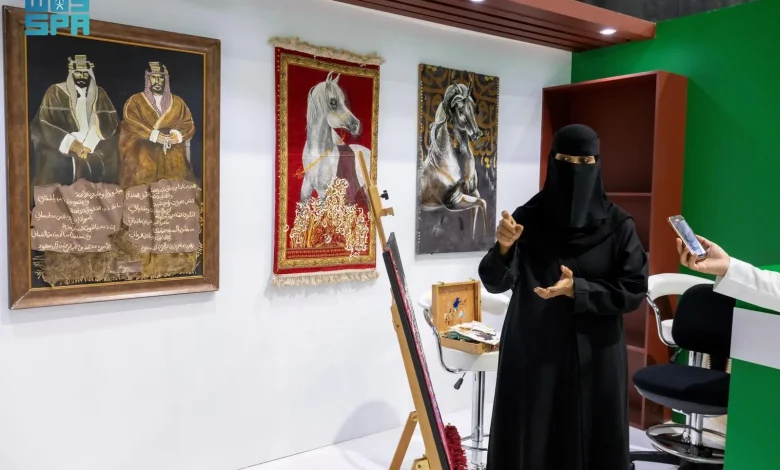 استوقفت إبداعات فنانة تشكيلية مشاركة في “مهرجان الملك عبدالعزيز للإبل”، زائري المهرجان, الذين شاهدوا نماذج تراثية إبداعية رسمتها على خامة الجلد والسجاد والقماش والجبس, وعرضتها من خلال ركن خاص بجناح وزارة البيئة والمياه والزراعة.