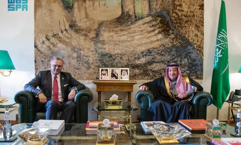 حضر الاستقبال، سمو مستشار وزير الخارجية للشؤون السياسية الأمير مصعب بن محمد الفرحان.