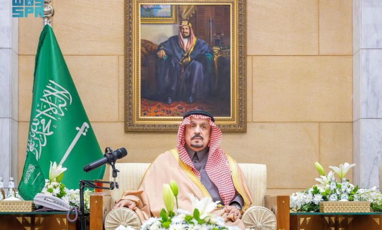 واستمع سموه خلال الاستقبال إلى شرح عن سير العمل في المحافظة والمراكز التابعة لها، مؤكدًا أهمية تعزيز الجهود لخدمة المواطنين والمقيمين، بما يسهم في تطوير المحافظة ودعم مسيرتها التنموية.