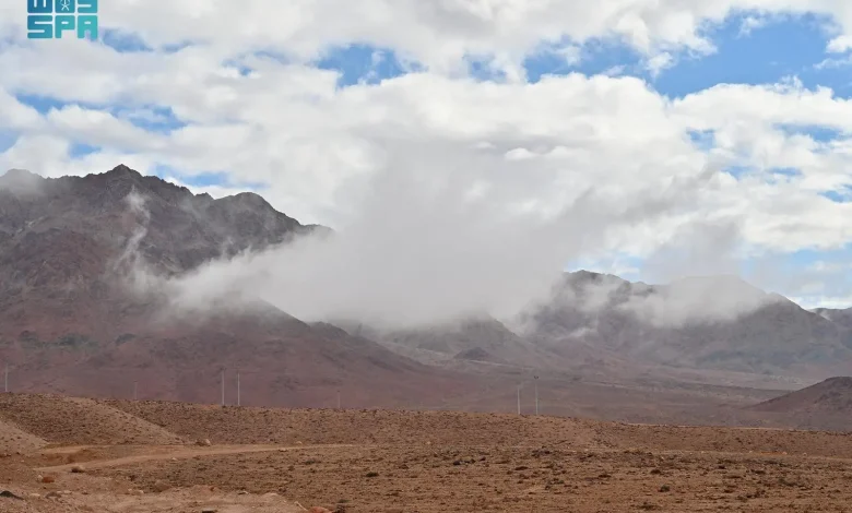 هطول أمطار على محافظة حقل وضواحيها والسحب تعانق قمم الجبال في بعض مراكزها