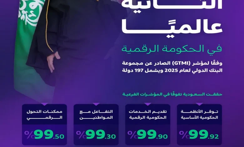 ووفقًا لبيانات تقرير البنك الدولي، حققت السعودية تفوقًا في المؤشرات الفرعية جميعها، لتصنف ضمن مجموعة الدول “المتقدمة جدًا” بنسبة بلغت (99.64%) على مستوى المؤشر العام، من حيث البنية الرقمية، والأنظمة الحكومية الأساسية، وتقديم الخدمات الإلكترونية، والتفاعل مع المواطنين، وهي من أعلى النتائج المسجلة عالميًا.