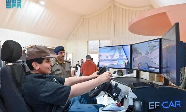 المرور يتيح لزوّار مهرجان الملك عبدالعزيز للإبل تجربة القيادة الآمنة عبر جهاز محاكاة