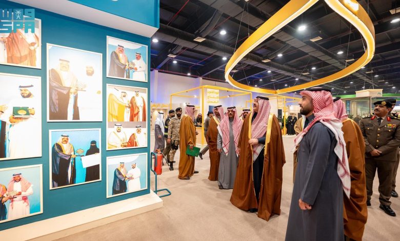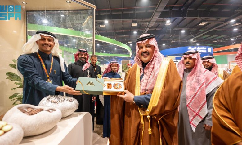 وفور وصول سموه دشّن هوية معرض خيرات حائل، ثم تجوّل في أركانه، واطّلع على محتوياته والأجنحة المشاركة، وما تقدمه من منتجات ومبادرات بيئية وزراعية تعكس جهود الاستدامة ودعم المنتج المحلي بالمنطقة.