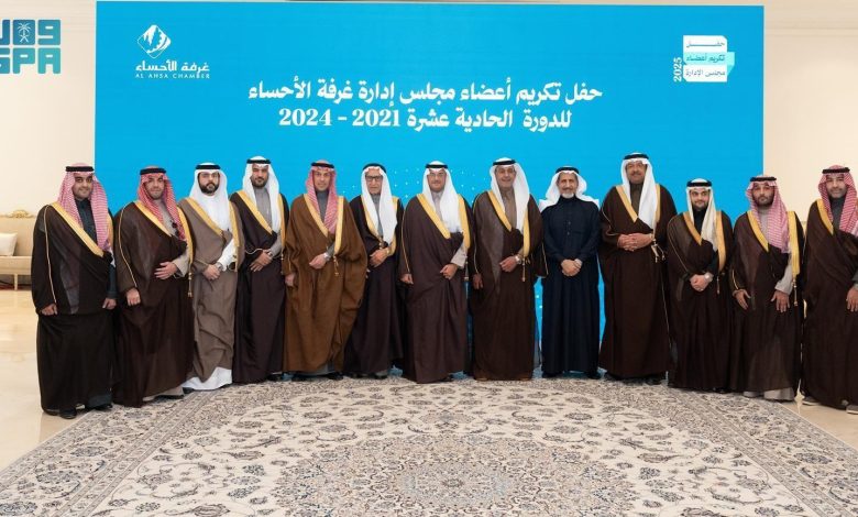 كرّم صاحب السمو الملكي الأمير سعود بن طلال بن بدر محافظ الأحساء، اليوم، أعضاء مجلس إدارة غرفة الأحساء للدورة الحادية عشرة (2021 – 2024)، وذلك بحضور عددٍ من المسؤولين وقيادات القطاعين العام والخاص، واستضافة أسرة الجبر.
