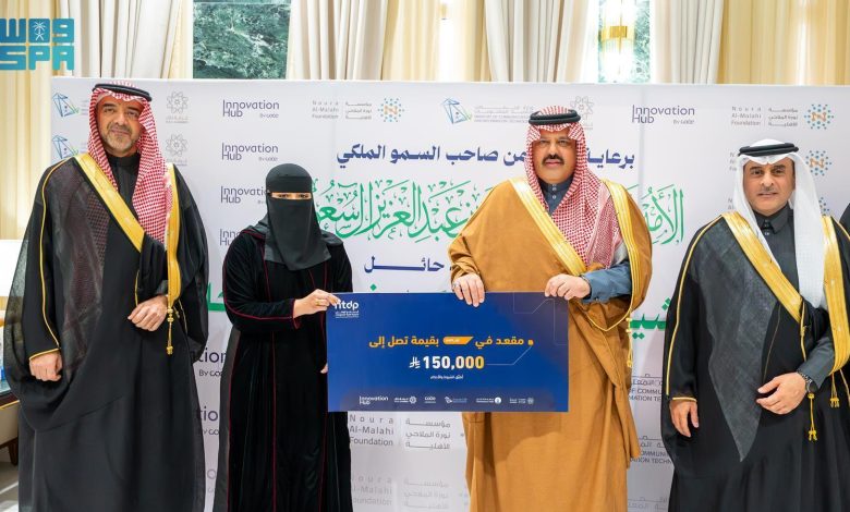 وفي ختام الحفل دشّن سمو أمير حائل مركز الابتكار، وكرّم شريك النجاح مؤسسة نورة الملاحي، والفريق الفائز في المسابقة الابتكارية الرقمية لطلاب جامعة حائل.